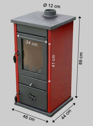 - Den Ofen gibt es in zwei Farben: tiefschwarz und karminrot.