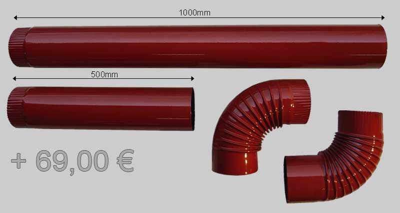 - Mindestabstand zu brennbaren Bauteilen: 50cm nach hinten, 50cm zur Seite, 80cm nach vorn