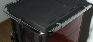 - praktisch: das (abnehmbare) gezackte Geländer hindert Brenngut am Herausfallen.
