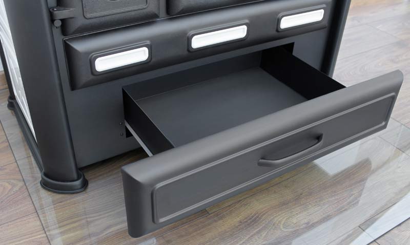 - Stauraum im unteren Teil des Ofens: genug Platz für Holzscheite, Briketts, Anzünder, Feuerzeuge etc.