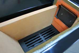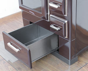 - Der komplett herausnehmbare Aschenkasten nimmt 3,9 Liter Asche auf. (auf dem Foto ist der Aschenkasten nur zu einem viertel herausgezogen)