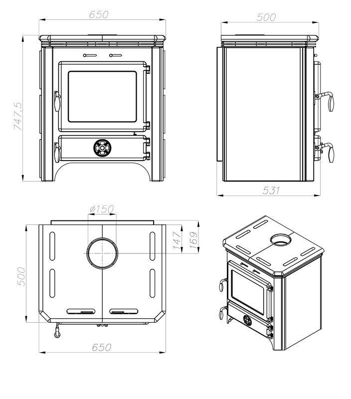- Tür und Glasscheibe sind sorgfältig gedichtet. Der Ofen darf auch an mehrfachbelegten Schornsteinen angeschlossen werden.